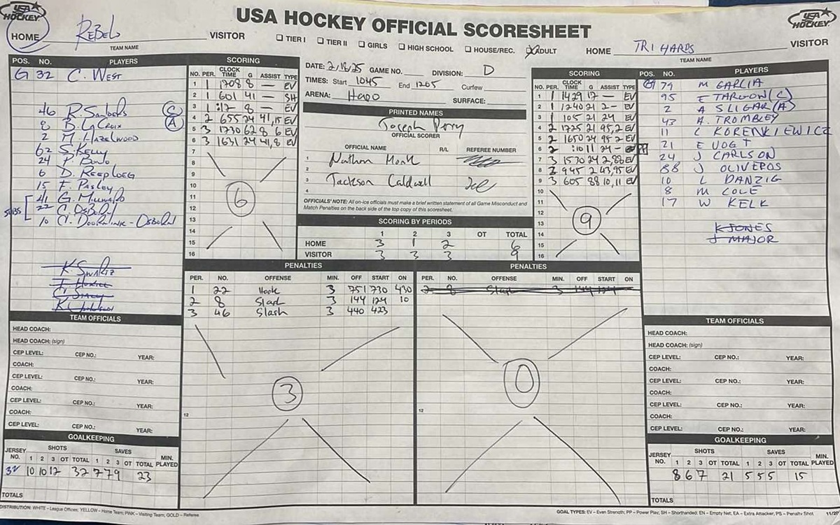 2025-02-18 10:45 PM Rebels Tri-Hards Hapo Ice Pavillion Joey Perry 6 - 9