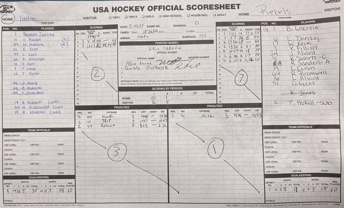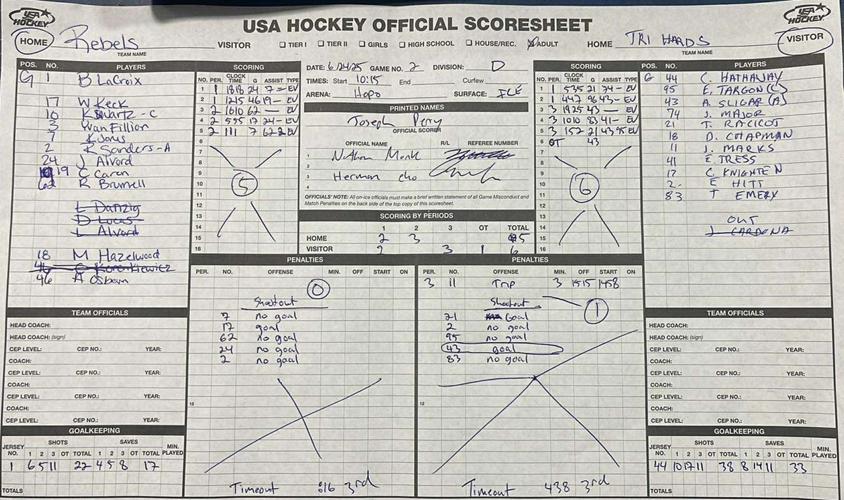 2025-06-24 10:15 PM Rebels Tri-Hards Hapo Ice Pavillion Joey Perry 5 - 6 SO