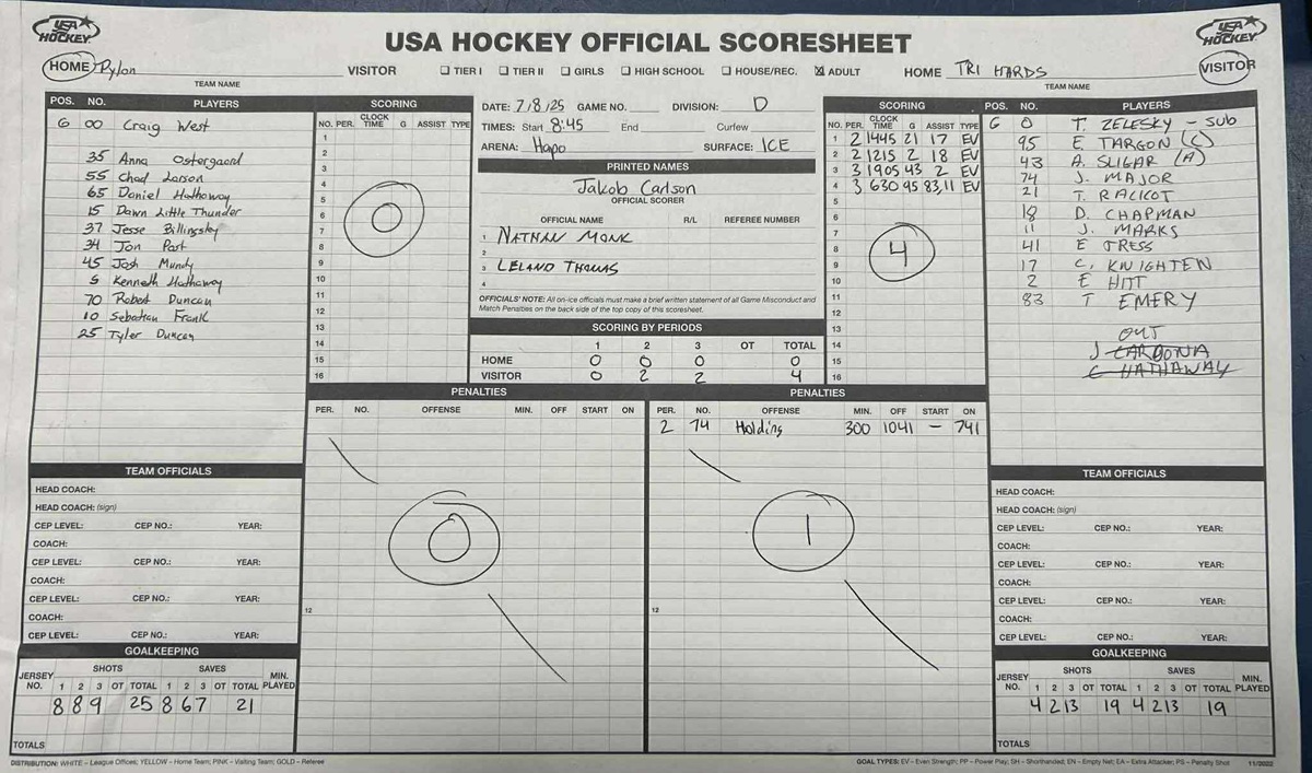 2025-07-08 08:45 PM Pylons Tri-Hards Hapo Ice Pavillion Jakob Carlson 0 - 4