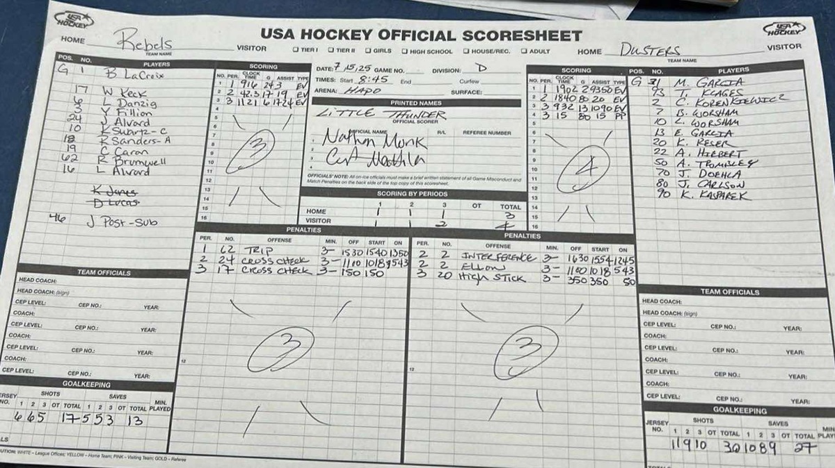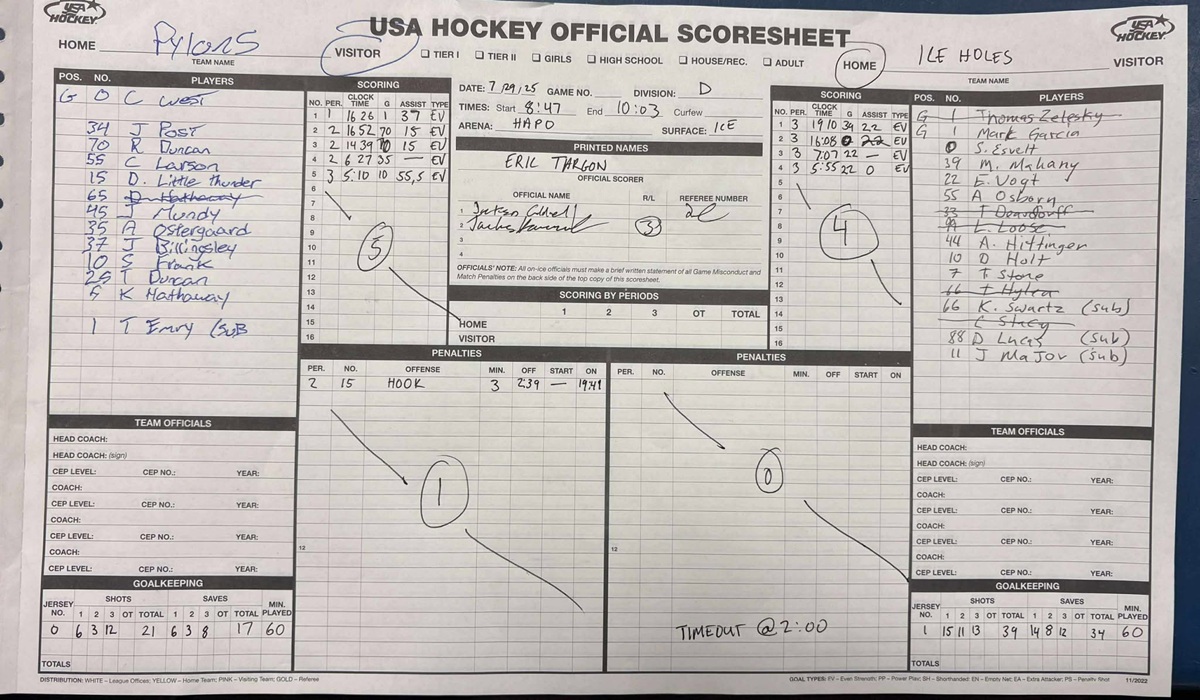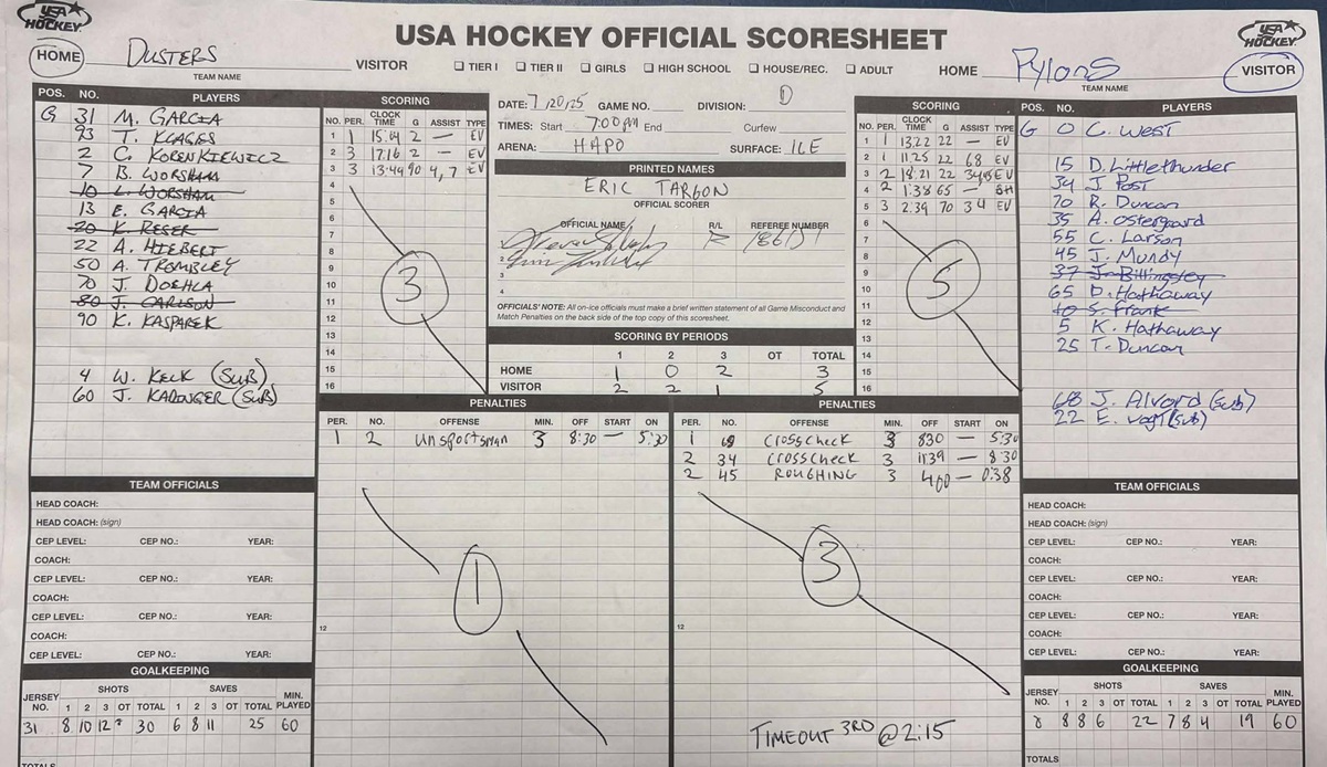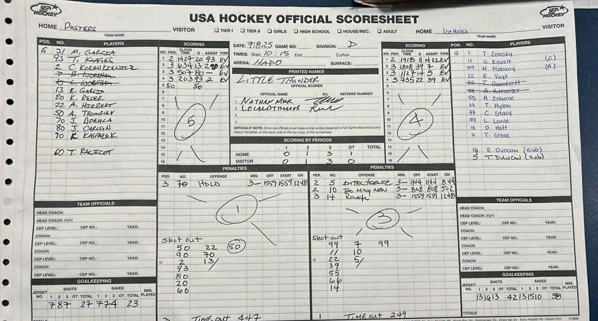 2025-07-08 10:15 PM Dusters Iceholes Hapo Ice Pavillion Dawn Little Thunder 5 - 4 SO