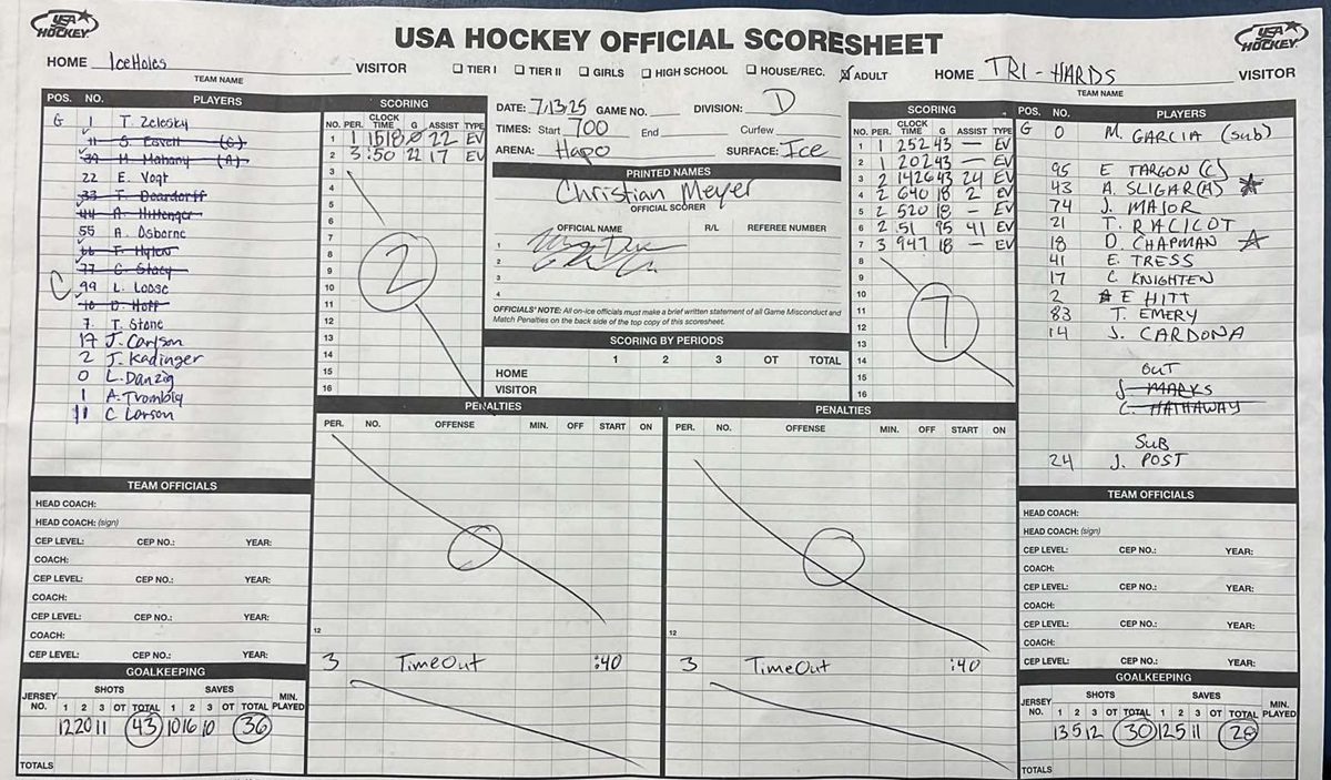 Game is Sunday!Iceholes Tri-Hards Hapo Ice Pavillion Christian Meyer 2 - 7