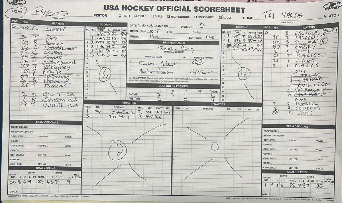 2025-08-12 10:15 PM Tri-Hards Pylons Hapo Ice Pavillion Joey Perry 4 - 6