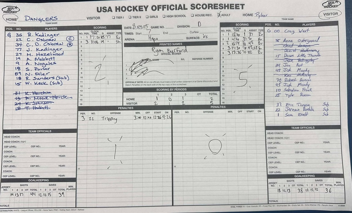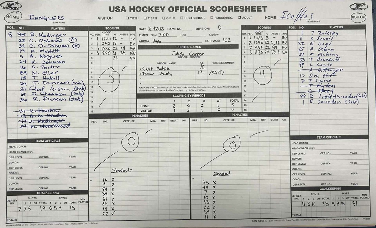 Game is Sunday!Danglers Iceholes Hapo Ice Pavillion TBD 5 - 4 SO