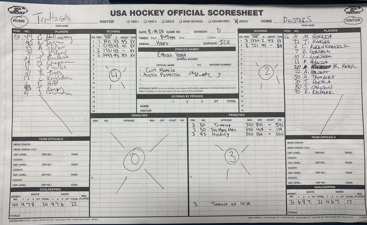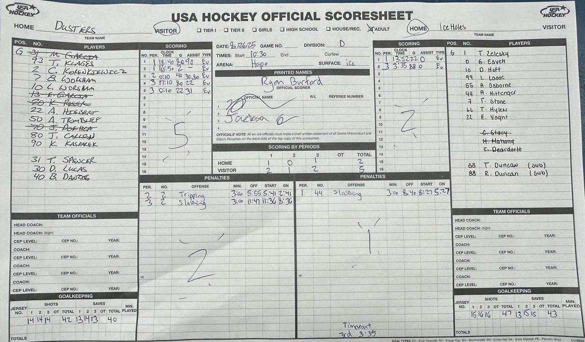 Consolation 2025-08-26 10:15 PM Dusters Iceholes Hapo Ice Pavillion TBD 5 - 2