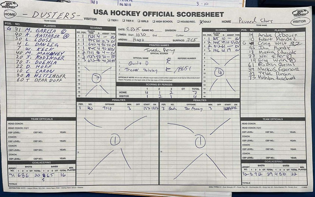 2025-09-23 10:30 PM Dusters Pawned Stars Hapo Ice Pavillion Joey Perry 7 - 4