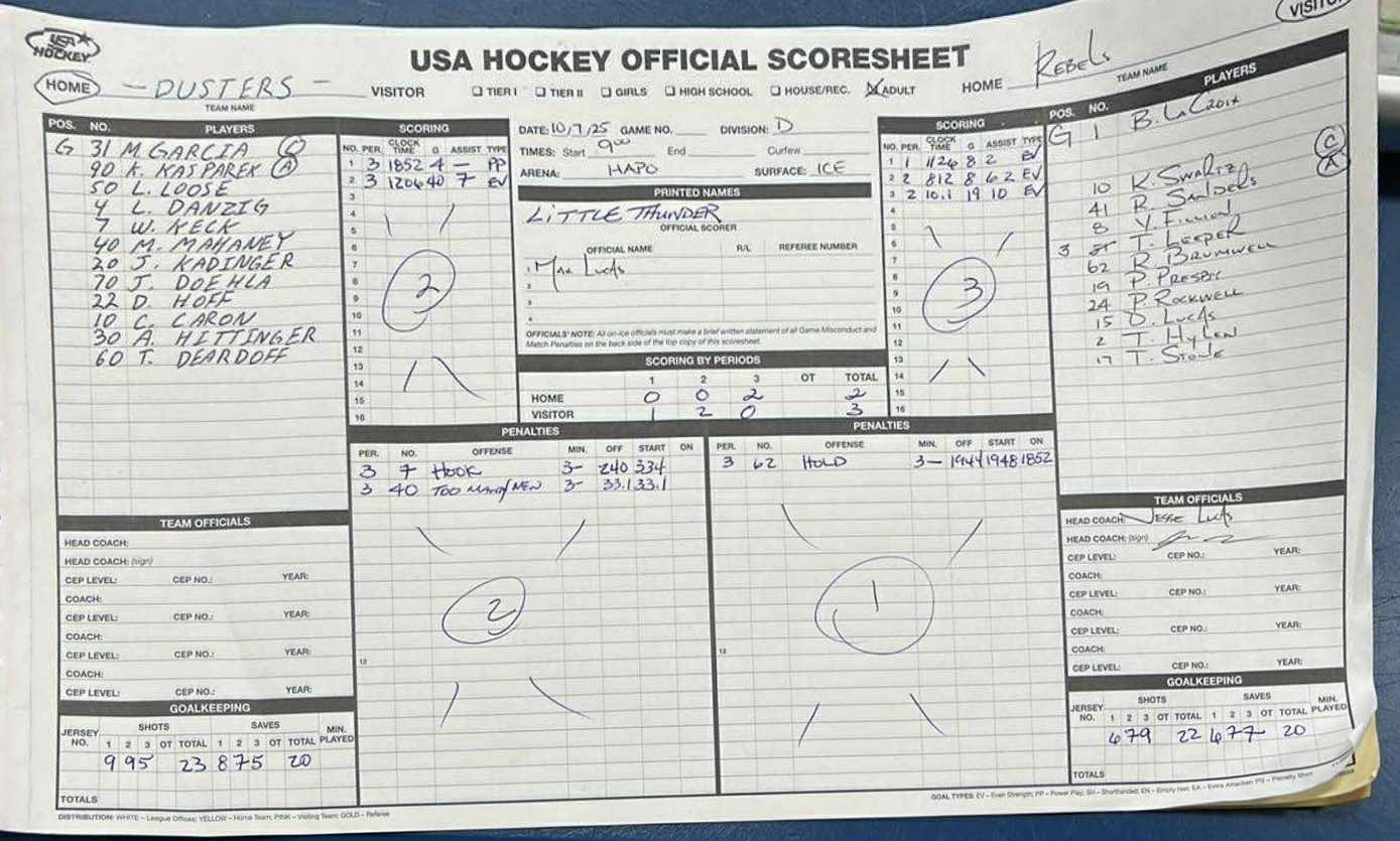 2025-10-07 09:00 PM Dusters Rebels Hapo Ice Pavillion Dawn Little Thunder 2 - 3