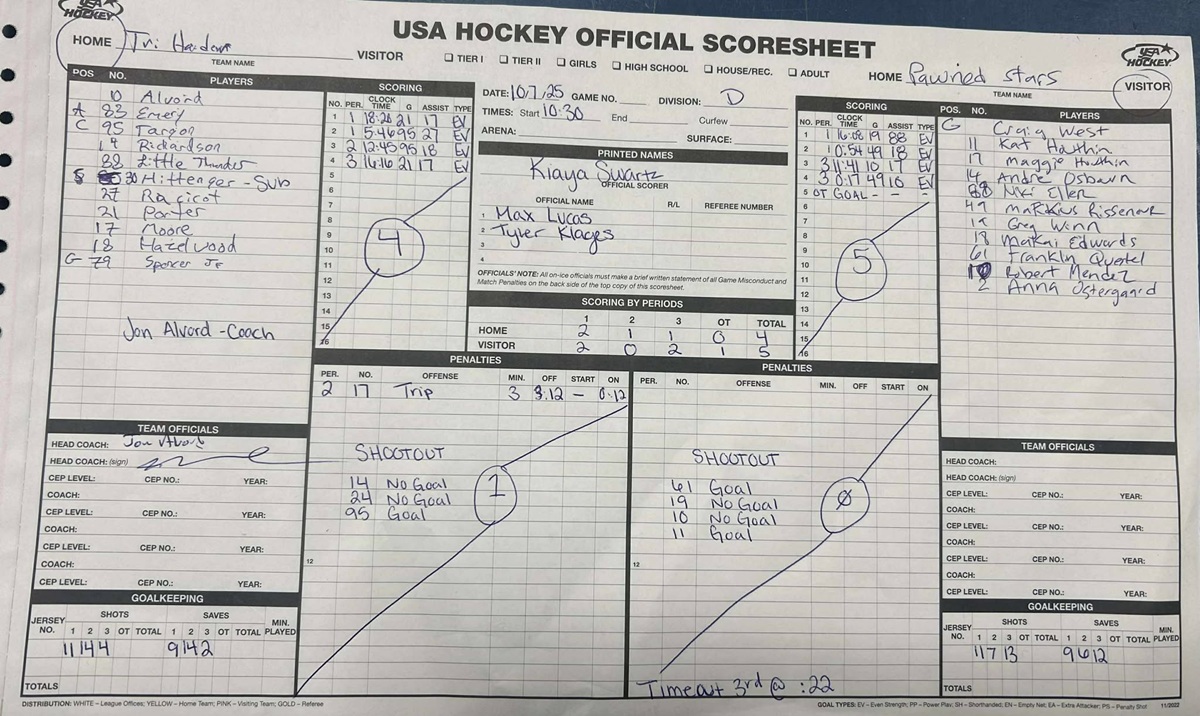 2025-10-07 10:30 PM Tri-Hards Pawned Stars Hapo Ice Pavillion Kiaya Swartz 4 - 5 SO