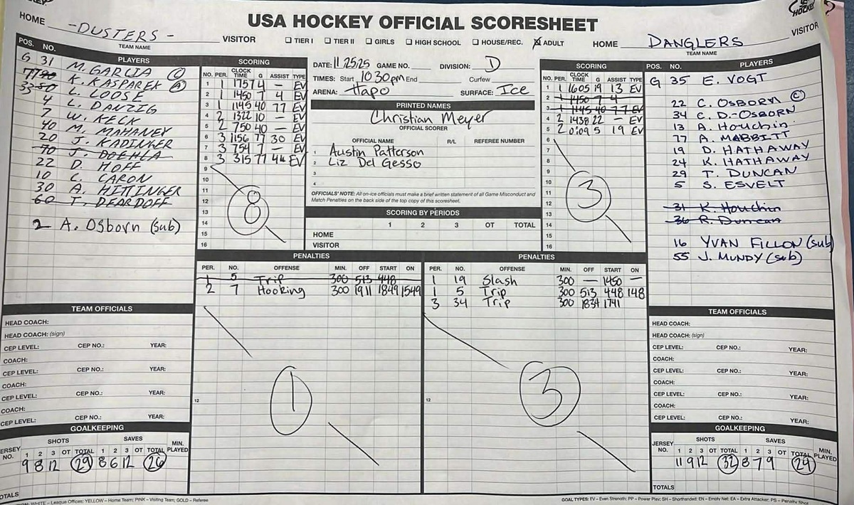 2025-11-25 10:30 PM Danglers Dusters Hapo Ice Pavillion Joey Perry 3 - 8